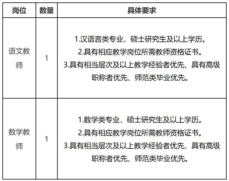2.具有较扎实的相关理论知识、专业对口,具有较强工作能力和抗压能力,能胜任学校教育教学和班主任等工作。