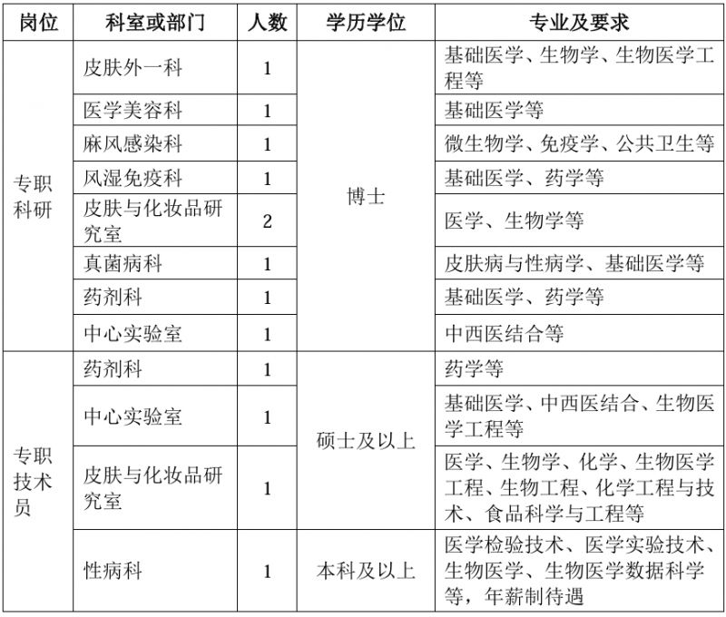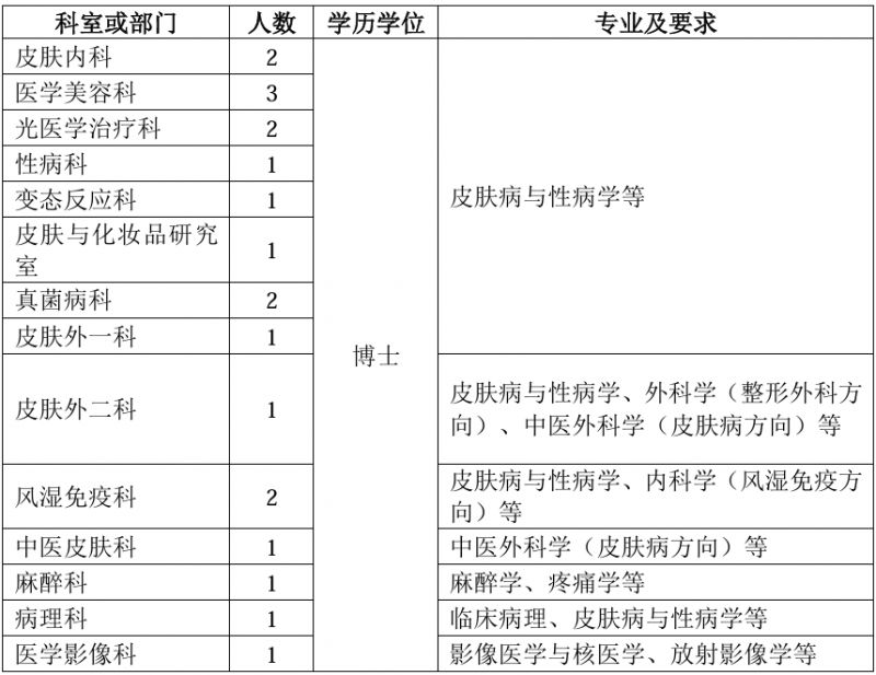 (一)皮肤科住院医师规范化培训基地医师岗位(优秀人员可申请临床博士后)