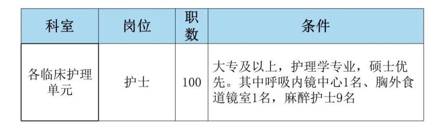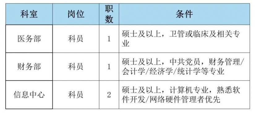 为适应医院快速发展需要,现向社会公开招聘以下岗位。