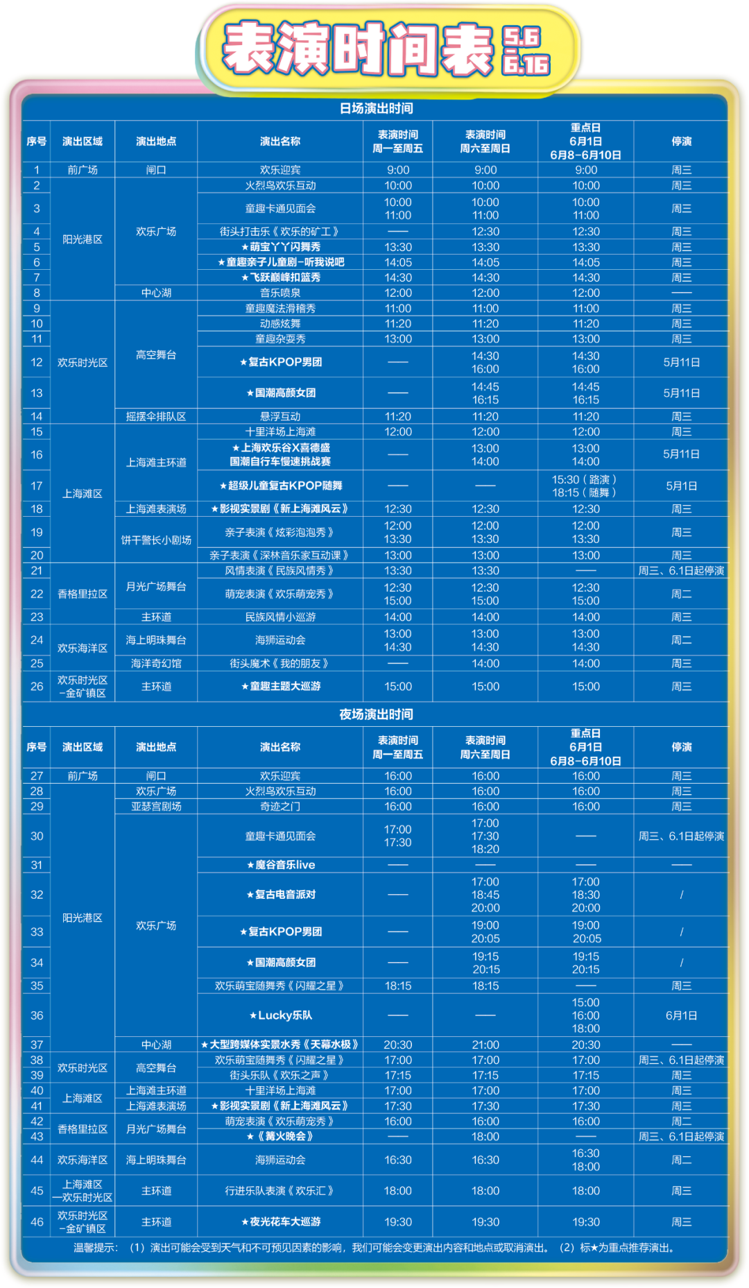 儿童节期间表演时间表:点击查看