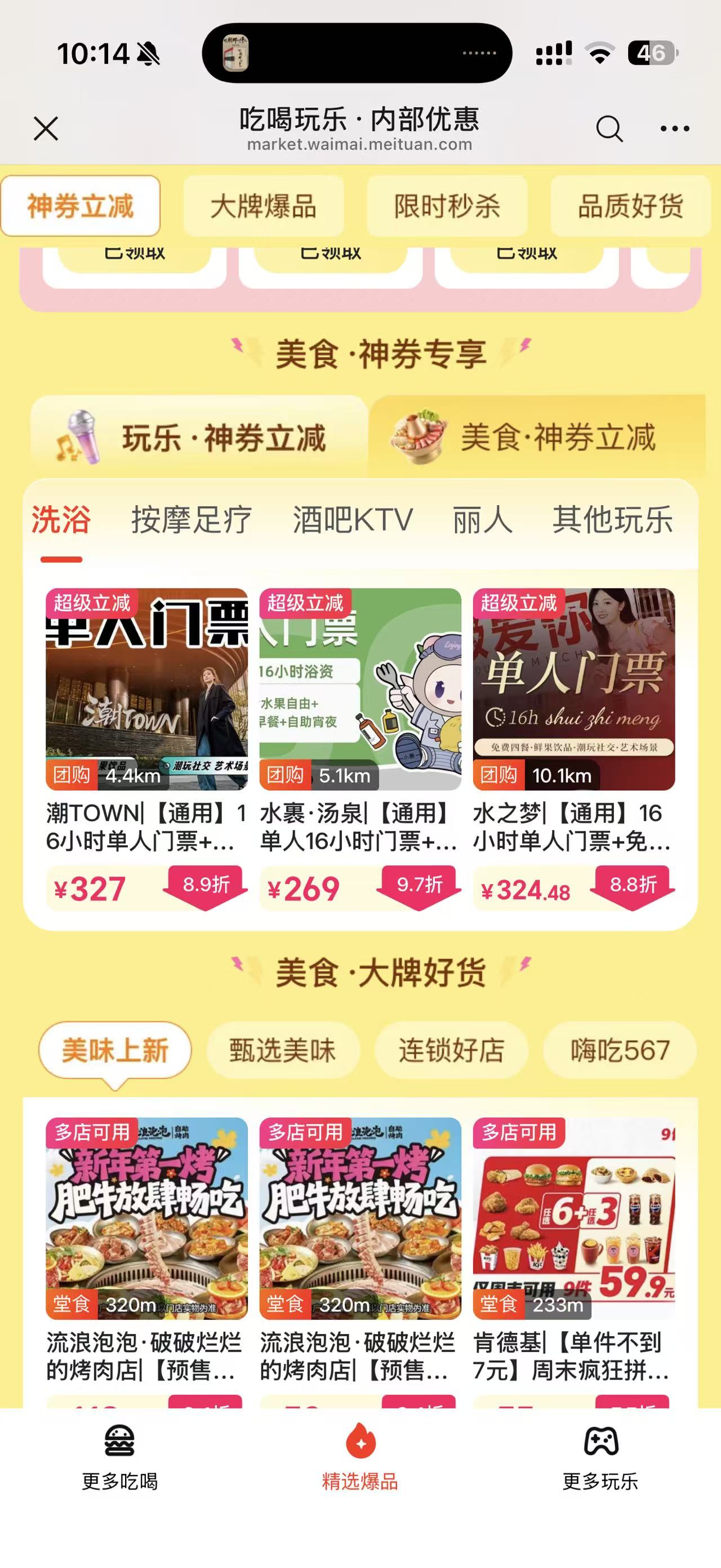 美团神券天天领(玩乐+美食)团购