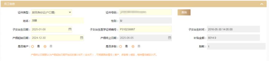 2.系统自动匹配女职工与出生医学证明信息,并自动显示子女出生日期和子女出生时间。